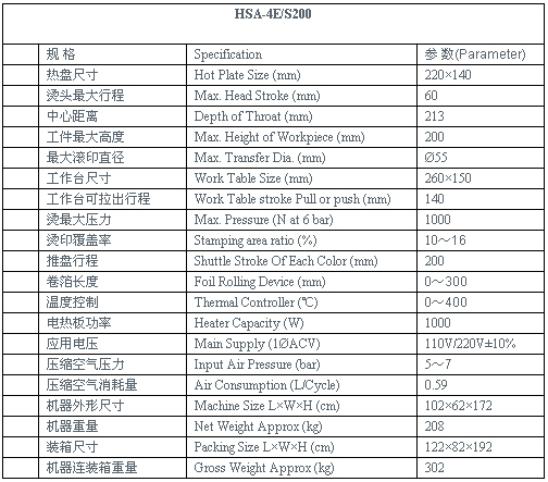 HSA-4E/S200平面燙印機