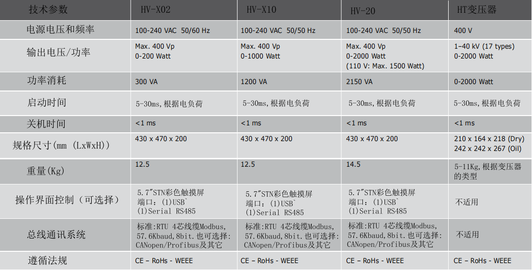 設(shè)備有HV-X02,HV-X10和HV-X20三種發(fā)生器型號(hào)。