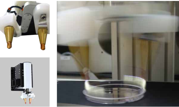 SpinTEC 是采用交流電機將2個PlasmaTEC-X的噴頭以最輕便的方式組合在一起,組成的以軸心為旋轉點的高速旋轉處理機構。